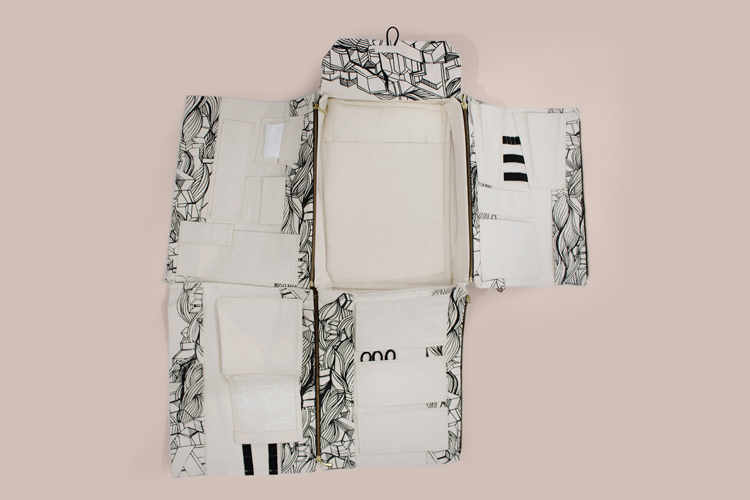 The Survival Kit is part of a collaborative research project. The challenge was to create a transportable, collapsible, and personal creative space, open to customization, sharing, and multi-functionality. The group was inspired by their own needs of organization. After researching the problems with traditional organization methods, the item that was created could be transported and shared between peers. The result is a multi-functional backpack with detachable compartments. Its concept comes from the shape of the cocoon or seashell with its numerous layers.