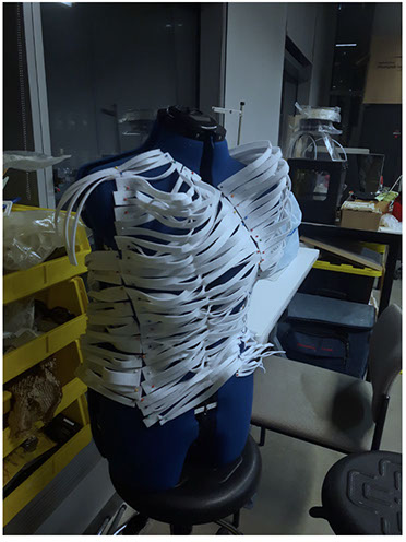 The feather vest will have two different states of interaction. The heartbeat sensors will activate the wearable technology by fluffing its feathers and changing colour to signal that they have acknowledged the person if front of them. In active mode, the feather component will ripple like waves around the wearer’s body. If the person wearing the vest wishes to go into passive move, they will have to calm their heartbeat. The title of interactive vest comes from the word “Piuma”, feather in Italian, in which “più” (plus) has been shortened by its symbol.