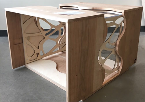 This table is inspired by one of the effects of climate change drought through its opening and closing mechanism. It is also inspired by a river that splits into many different slow-flowing channels that have muddy banks.
