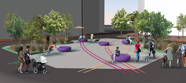 Despite changes to the social landscape of Griffintown over time, these pathways have endured Montreal’s history. This intersection (rue Guy, William and Ottawa) is a gathering point for dwellers of several boroughs, representing a convergence point of different communities. Intersections’ adjacent location provides a permeable and participatory access point for Legado to welcome and integrate the existing community. We seek to redefine the traditional idea of ‘the town square” as a gathering place, alternatively providing a constantly evolving space where ideas, people and experiences intersect. “Intersections” represents our belief in participatory design and communal ownership; once installed, the artwork’s second life begins at the hands of the community.