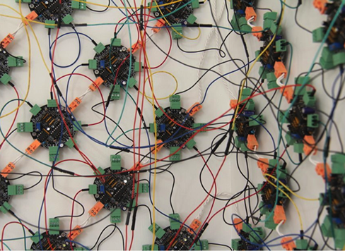 Using sensors to gather data from within a space, the data flows through a neural network where it gets aggregated into a final compound. This information is sent through a diffused LED matrix where it mimics the biological process called morphogenesis, the nature of an organism taking a shape. The neural network is purely electronics based to replicate the complex structure of our brain.