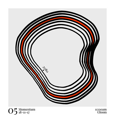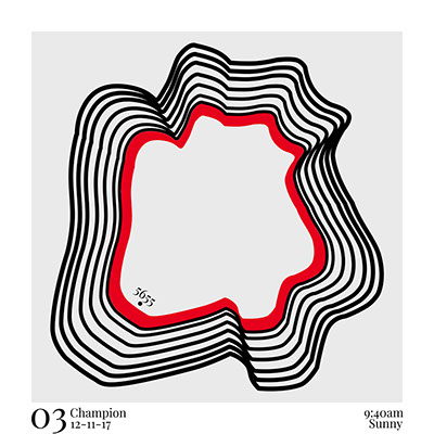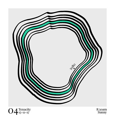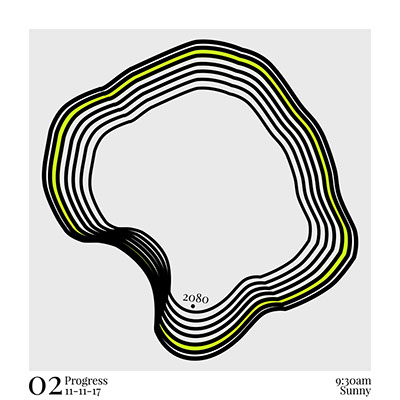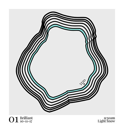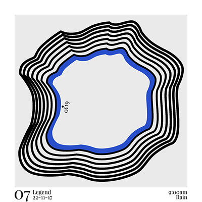During the span of two weeks, I recorded data after every workout I completed at the gym. This art piece is based on a subjective question that I asked myself after each session: How many mountains do you feel like you can lift or conquer? In addition to this, I also drew a mountain shape based on my feeling and I associated each day to a keyword that best described each workout. With the keyword, rating and sketch, I was able to build and mold my mountains.