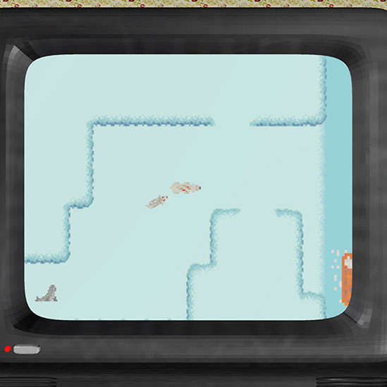 In-between levels, interstitial newscasters discuss the current state of the Arctic’s flora and fauna, and the recent developments of a power-hungry oil corporation that is slowly encroaching on their territory. In doing so, the game demonstrates how climate change profoundly impacts all aspects of the planet’s ecology – and how this, in turn, will eventually negatively affect humans as well.