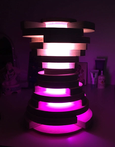 The purpose of my project is to have a design that can be of great usage. I believe that the designed object can be found in any living room or bedroom. It can also be adjusted in so many ways to match each one’s taste, need and decor. My puzzle is in the form of a lamp, has 17 plates that only fit the plexiglass tube vertically and could be easily rotated to have the openings in different positions (example: align the openings, rotate them randomly, or have them the same as the stairs).