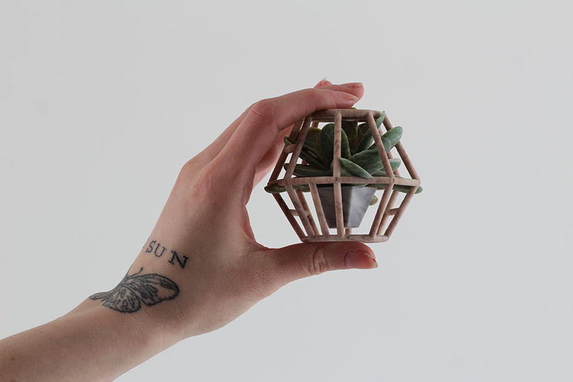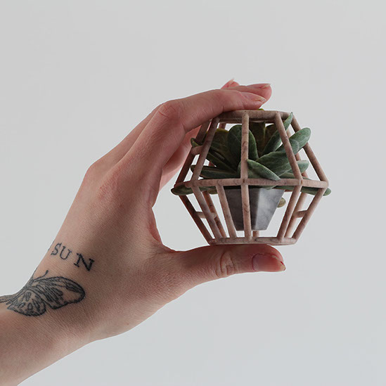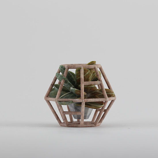 The goal of this project was to work between the digital and the tangible in regards to sculpture. The result is a 3d printed, impossible terrarium in which the plant floats within the boundaries of the terrarium, its leaves intersecting the structure in a way that would not otherwise be possible.